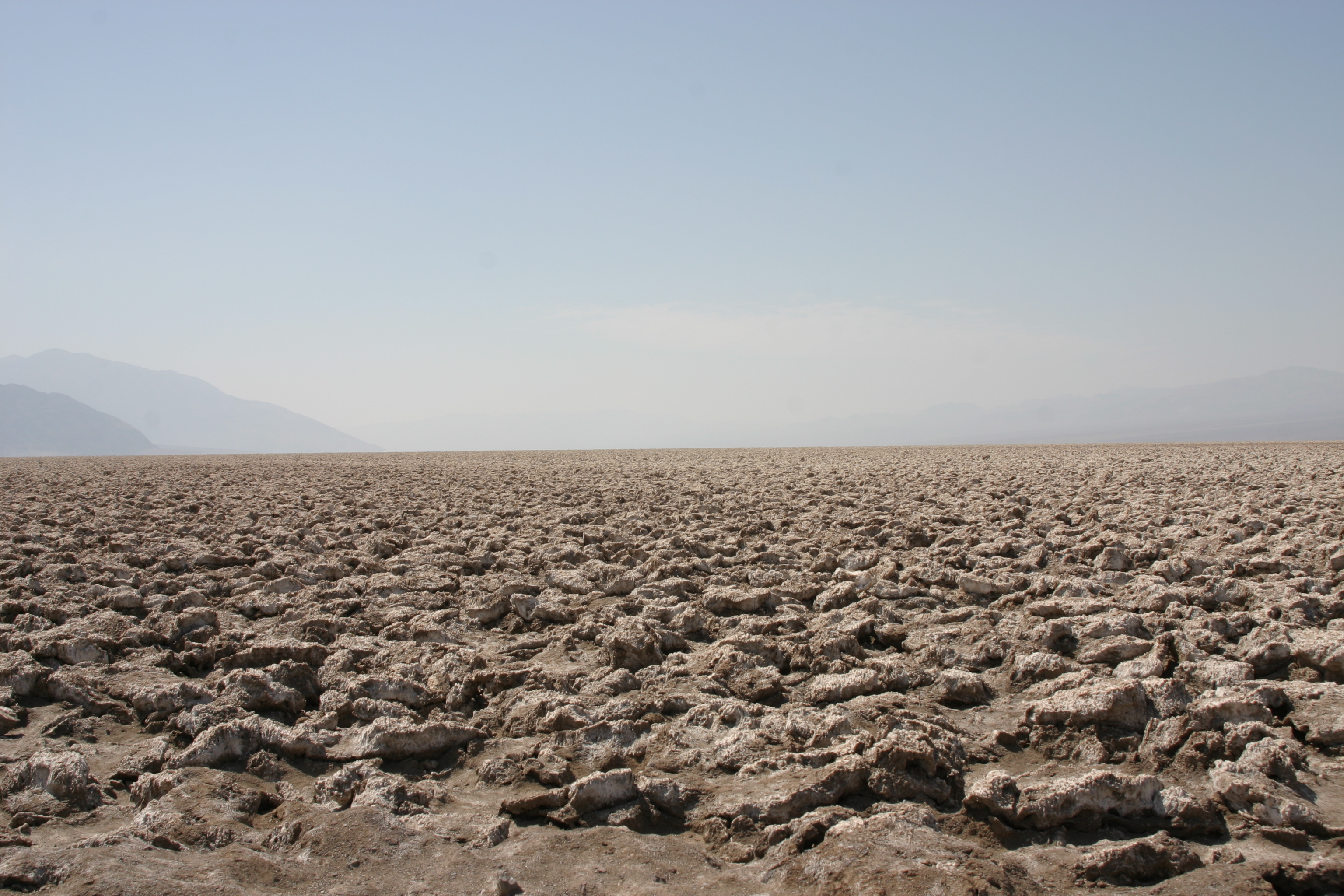 –DEVILS GOLF COURSE ó traducido, el campo del golf del diablo. Este paraje está formado por restos de sales que afloraron a la superficie desde un desparecido lago .Algunos estudios apuntan que la profundidad de la capa de sales alcanza los 2.700 metros puntualmente. El paisaje es impresionante. Es como estar en otro planeta. Hace mucho calor…