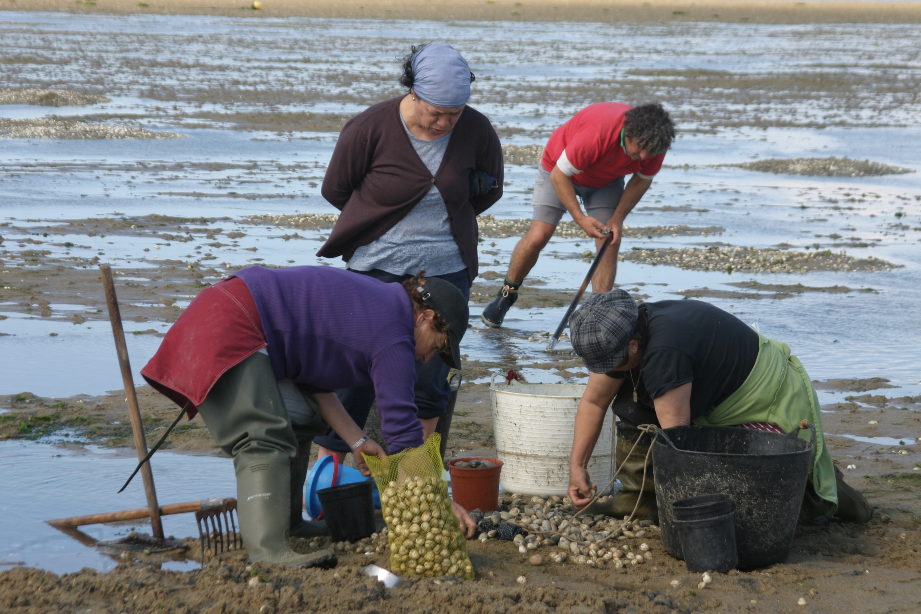 Berberecho, almeja fina y japónica. Desde que están organizadas las mariscadoras no solo recogen los moluscos, también los cultivan.Es un trabajo laborioso y meticuloso que les garantiza la cosecha.
