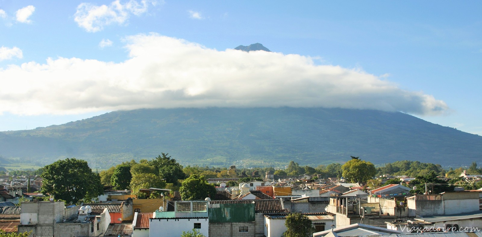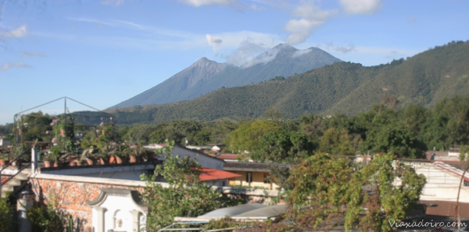 • Bueno, hay algunos vecinos dignos de mirar por la mañana jejeje La verdad es que los volcanes son hipnotizantes y verlos así «desde casa» es especial. Antes de visitar Guatemala no había visto ninguno y me pasaba horas mirándolos y haciéndoles fotos. El Agua, que es el que tiene el cono más perfecto tipo estromboliano, resulta majestuoso siempre y va cambiando con la luz, las nubes…El volcán Fuego suelta fumarolas a ratos y por las noches ¡escupe fuego! Resulta mágico, son como montañas con vida y a mi me tenían alucinada!